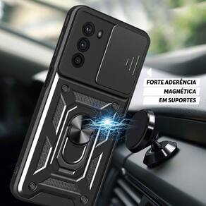 Com a Capa Capinha Case Motorola Moto G42 - Protetora Militar, você também poderá contar com algumas funcionalidades extras. Ela possui um anel de dedo e um metal embutido, que permitem aderir a capa em um imã, facilitando o uso do seu smartphone em suportes magnéticos. Além disso, o anel ajustável da capa pode ser utilizado como base, proporcionando uma melhor visualização da tela.