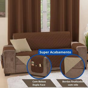 Capa Protetora de Sofá King 4 Lugares Manu Matelado Dupla Face Variação: Cáqui e Marrom Bem-vindo à Atual Ecommerce Se você procura unir bom gosto e praticidade na proteção dos seus móveis, está no lugar certo. Nossa linha de capas protetoras vai transformar a sua sala com estilo e funcionalidade. Apresentamos a Capa Protetora de Sofá King 4 Lugares Manu Matelado Dupla Face Um toque de elegância com proteção total para seu estofado Seu sofá vive exposto a sujeira, manchas ou pelos de pets O modelo Manu resolve esse problema com um design moderno, funcional e versátil. A capa oferece dupla face, matelado com costuras em losangos, bolsos laterais e acabamento em viés. Tudo isso pensado para deixar seu ambiente mais bonito e prático. Veja como outros clientes já transformaram seus lares: fiquei encantada com a qualidade A costura é linda e o tecido resistente. troco de lado toda semana É como se tivesse duas capas. os bolsos são muito úteis. Agora o controle não some mais Especificações Técnicas: Modelo: Manu King Matelado Medidas: Assento: 2,40 m Capa: 2,40 x 1,90 m Braços: 0,40 x 0,80 m Total com braços: 4,00 x 1,90 m Composição: Tecido superior e inferior: 100% Poliéster Manta interna: 100% Poliéster Diferenciais: Matelado em linha com desenho de losangos Dupla face com duas cores Bolsos laterais porta-objetos Acabamento com viés Lavável à máquina modo delicado Observações: Os bolsos estão presentes em apenas um dos braços. As cores podem variar de acordo com o lote ou monitor. Verifique sempre as medidas na embalagem. de 3 meses contra defeitos de fabricação Compre com total confiança e tranquilidade. Não perca a chance de renovar seu ambiente com estilo e proteção Agradecemos sua visita à Atual Ecommerce. Conte conosco para transformar sua casa O que o cliente vai receber: 1 Capa Protetora de Sofá King 4 Lugares Manu Matelado Dupla Face Marca: Não Informado Ean: 7895096890931