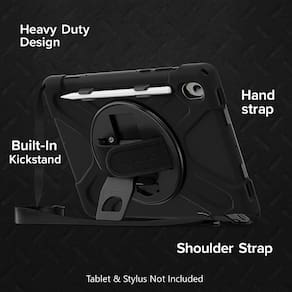 - Alça de mão e alça de transporte de ombro - Fornece uma fixação firme e simplifica o transporte de seu tablet.