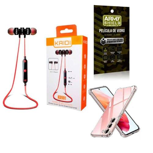 Fone de Ouvido Esportivo sem fio KD-901Se você procura um fone para as atividades diárias, exercícios e movimento o fone sem fio KD-901 é a escolha idealContém Tons graves , profundos e complexos. Um verdadeiro som de qualidadeControle a reprodução de músicas e vídeos direto do botão de controle.Atenda e desligue chamadas, microfone HD in line embutido com controle de faixas.Com imã embutido que não atrapalha e não fica caindo da orelha, produto de design intra-auricular projetado para ser confortável ao ouvido. Isolamento de ruídos sem vazamento de som. O fone utiliza uma tecnologia aeronáutica de redução de ruído. Isola interferência de ruído externo. Mergulhe no mundo da músicaEspecificaçãoVersão: V4.2Tempo de espera: 200hTempo de conversação: 6hTempo de reprodução de música: 4hTempo de carregamento: 1.5hFaixa de frequência: 2.402G-2.480GTemperatura ambiente: -20/ +60CDistância de transmissão: 10mEspecificação do DriverUnidade do driver: 10mmSensibilidade: 103dB +-3dBImpedância: 16 +- 15%Resposta de frequência: 20-20000HzComprimento do cabo: 600mm Conteúdo da Embalagem:1und - Fone de Ouvido Esportivo sem fio com microfone HD Atenção: Não acompanha itens não descritos neste anúncio.-------------Capinha Silicone Anti Impacto Anti Shock Transparente - ArmyshieldA capa de celular antishock é um produto de alta qualidade que oferece proteção e estilo para o seu dispositivo móvel. Feita de material de TPU poliuretano termoplástico de alta resistência, a capa é projetada para absorver impactos e proteger o seu celular contra quedas, arranhões e outros danos.A capa antishock transparente é especialmente projetada para se encaixar perfeitamente no seu celular, proporcionando uma cobertura completa e proteção para todas as partes do dispositivo. Ela é transparente, permitindo que você exiba a beleza do seu celular sem comprometer a proteção.-------------Película de Vidro 3D Blindada - ArmyshieldA película de vidro 3D para celular é um produto de alta qualidade que oferece proteção e estilo para o seu dispositivo móvel. Feita de vidro temperado de alta resistência, a película é projetada para se encaixar perfeitamente na tela do seu celular, proporcionando uma cobertura completa e proteção contra arranhões, rachaduras e outros danos.A película de vidro 3D é especialmente projetada para se curvar suavemente ao redor das bordas do seu celular, criando uma aparência elegante e sem bordas. Isso significa que você pode desfrutar de uma experiência de visualização imersiva e sem interrupções, sem se preocupar com a película descolando ou interferindo na sensibilidade da tela.Atenção: O produto acompanha apenas o que apresenta na imagem.