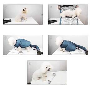 7 - Vire a secadora em calor quente ou baixo e a velocidade do ar para alta. O secador de cães de estimação vai inchar. O ar deve ventilar através das aberturas das pernas, pescoço e cauda.