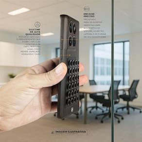 Já o Suporte Ventosa de Silicone complementa a experiência com uma solução prática e inovadora para apoiar o celular em qualquer superfície lisa. Com 24 ventosas superaderentes e adesivo 3M na parte traseira, ele fixa com segurança o aparelho em vidros, espelhos, azulejos, telas e outras superfícies planas, sem deixar resíduos. Ideal para quem grava vídeos, realiza chamadas de vídeo, acompanha receitas ou consome conteúdo com mais conforto, ele permite que você tenha as mãos livres e o celular sempre visível. Compacto, reutilizável e disponível em cores vibrantes, é um acessório leve que pode ser transportado facilmente na bolsa ou no bolso.