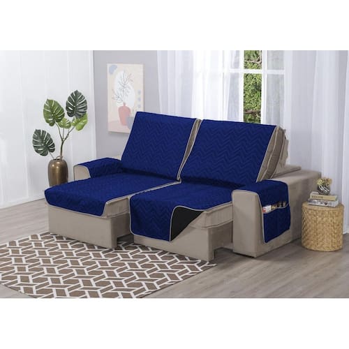 Capa de Sofá Retrátil Protetor 4 Lugares 2,40m de Assento Dupla Face Duas Cores Cor: Azul royal e preto Além de manter seu sofá limpo e novo por mais tempo, os protetores de sofá são grandes aliados na decoração, pois você pode combinar com cortinas, tapetes, capas de almofada e itens decorativos. Também são ideais para quem tem pets que adoram tirar um cochilo no sofá.