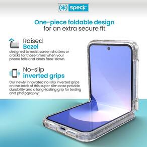 Feita com 50% de plástico reciclado, esta capa sustentável encaixa-se perfeitamente no Samsung Galaxy Z Flip 6 com recortes precisos para portas, botões e câmera. Sua construção dobrável de peça única garante um ajuste seguro que não interfere no carregamento sem fio. Testada independentemente em condições reais, incluindo quedas extremas, variações de temperatura e flexão do dispositivo, a capa Speck Presidio Lux garante proteção confiável enquanto adiciona um toque de brilho ao seu smartphone.