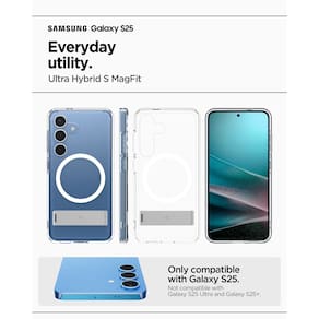 A escolha mais clara. Ultra Hybrid S mostra seu design atemporal compatível com SP67E com a máxima conveniência. Nunca deixe o sonho minimalista terminar com proteção diária que mantém você livre de quedas e arranhões. Agora com MagFit para desbloquear novos acessórios magnéticos compatíveis com Galaxy. Além disso, seu suporte versátil agora fecha nivelado para ultra utilidade. - Proteção contra quedas de nível militar através da tecnologia Air Cushion - Infundido com resina azul para clareza duradoura - Suporte versátil com ajuste embutido através da tecnologia Active Stop - Carregamento rápido sem fio compatível com carregadores feitos para Galaxy - Spigen Capa Ultra Hybrid S MagFit compatível com Samsung Galaxy S25