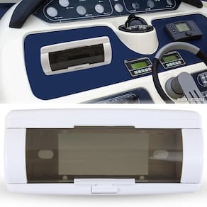 DESCRIÇÃO:Fabricado em policarbonato, esta capa de proteção para rádio é ideal para ser instalado em barcos, lanchas ou veleiros. Possui proteção contra raios solares, umidade, chuva, impactos, queda de líquidos, calor, etc. Com abertura flip para acesso ao rádio, compatível com a maioria dos aparelhos de som existentes no mercado. Produto marinizado para maior durabilidade. Perfeito para deixar seu barco mais elegante e com o conforto de poder ouvir uma boa música enquanto navega.ESPECIFICAÇÕES TÉCNICAS:- Moldura em policarbonato na cor branca;- Tampa em acrílico na cor fumê;- Resistente a respingos de água e a poeira;- Proteção contra os raios UV.