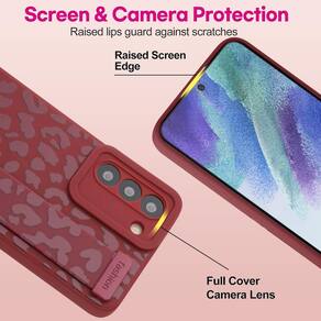 OOK Capa compatível com Samsung Galaxy S21 FE 5G com alça de pulso, capa protetora de silicone leopardo à prova de choque fina antiarranhões para mulheres e meninas, vinho tinto - Serve apenas para Samsung Galaxy S21 FE 5G. (Certifique-se de que seu modelo) - Nossa capa leopardo vermelho vinho com estilo único e legal, padrão vibrante com design de chita brilhante que deixa seu telefone especial. - A capa à prova de choque de corpo inteiro protege contra quedas com um amortecedor de TPU macio, juntamente com bordas elevadas para cobertura de tela e câmera. - Sua mão pode passar pela alça de pulso quando você pega seu telefone, protegendo contra quedas acidentais de telefones. - Fácil acesso a todos os botões e portas (câmeras, impressões digitais, portas e botões). A capa suporta carregamento sem fio sem tirar.
