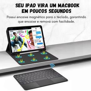 imagine poder usar seu tablet como um laptop em qualquer lugar, sem comprometer a segurança e proteção do seu dispositivo. Com nossa capa de tablet com teclado incluso, você pode ter tudo isso e muito mais. Além disso, uma fixação magnética garante que seu dispositivo esteja sempre seguro e protegido contra quedas ou arranhões.