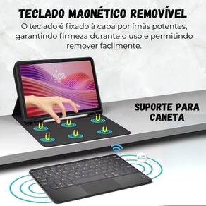 Capa teclado para lenovo tab 10.1 polegadas + caneta stylus Cor: preto Transforme seu tablet em uma central de produtividade com a capa de silicone com teclado embutido. A capa possui estrutura em silicone resistente, protegendo seu teclado contra quedas, arranhões e impactos. O teclado integrado oferece uma digitação fluida e eficiente - ideal para estudar, trabalhar ou simplesmente navegar com mais agilidade. E o melhor ele é removível, facilitando o uso em diferentes situações. Com fixação magnética, seu tablet fica estável e seguro durante o uso, mesmo em superfícies instáveis. E para completar, o slot lateral permite acomodar sua caneta, protegendo a ponta e facilitando o transporte. Funcionalidade, proteção e praticidade em um só produto. Leve o seu agora e eleve a experiência com seu tablet ------------------ Atenção ------------------ Compatível com tablet lenovo tab 10.1 polegadas tb311fu / tb311xu Como conectar o teclado com o dispositivo: 1 - ligue o teclado e o bluetooth do seu aparelho. 2 - no teclado, aperte as teclas fn + c. 3 - no aparelho procure o bluetooth com o nome keyboard e conecte. ------------------ ------------------ O teclado é grudado na capa Posso usar a capa com película R: sim, você pode usar a capa junto com a película sem problema, a case não interfere no uso da película. O teclado funciona via bluetooth R: sim ele se conecta ao tablet via bluetooth e é recarregável com o cabo incluso. Tem suporte para caneta R: sim a capa possui slot lateral para caneta, ideal para guardar com segurança e proteger a ponta. ------------------ Especificações ------------------ Capa com teclado embutido Material: silicone macio e resistente Teclado: embutido e removível Conexão: bluetooth sem fio Bateria do teclado: recarregável via cabo usb incluso ------------------ Conteúdo ------------------ 1x capa magnética. 1x teclado. 1x cabo usb. 1x caneta stylus. Anúncio referente a case Acessórios que ambientam as fotos não inclusos. ------------------ Apresentação: ------------------ - qualidade garantida. - atendimento qualificado. - enviamos para todo o brasil. - compra garantida. - despachamos em até 1 dia útil após confirmação do pagamento Garantimos a devolução por arrependimento em até 7 dias, após o recebimento e de 15 dias contra defeitos de fabricação. Marca: Não Informado