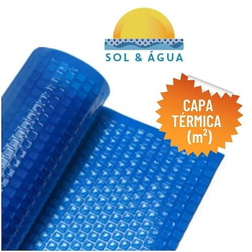 O material para a confecção da Capa Térmica para piscinas é um filme plástico de polietileno com bolhas, que flutua sobre a água,