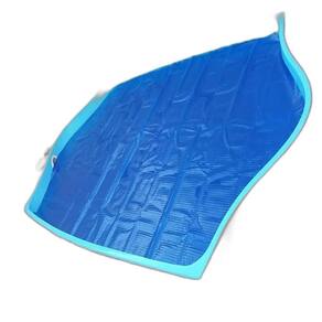 Para piscinas arredondadas a capa vai retangular, podendo ser ajustado com tesoura ou estilete no espelho da piscina