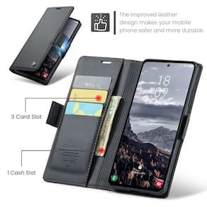 Funcionalidade abrangente da carteira: com vários compartimentos para cartões e um bolso dedicado para dinheiro, oferece uma maneira fácil de manter seus cartões de crédito, identidade e notas organizados e seguros. Proteção total para o seu telefone: Feita de materiais premium que absorvem impactos, esta capa carteira oferece proteção total para o seu telefone. Ela protege contra quedas, arranhões e desgaste diário, mantendo um perfil elegante. Fecho magnético seguro: o fecho magnético forte garante que seu telefone, cartões e dinheiro fiquem presos com segurança. Se você estiver em movimento ou guardando seu telefone em uma bolsa ou bolso, o fecho magnético evita aberturas acidentais e mantém seus pertences seguros e protegidos. Suporte embutido para uso sem usar as mãos-livres: aproveite a conveniência adicional com o recurso de suporte integrado, permitindo que você suporte seu telefone no modo paisagem para visualização com as mãos livres. Design fino e leve: apesar de suas características robustas, esta capa carteira foi projetada para manter o perfil fino e leve do seu telefone. Cabe confortavelmente em sua mão e bolso, oferecendo proteção e funcionalidade sem adicionar volume. - Design com compartimentos para cartões: esta capa carteira para Samsung Galaxy S25 Plus possui vários compartimentos para cartões e um bolso seguro para dinheiro, oferecendo uma maneira conveniente de carregar seus itens essenciais sem a necessidade de uma carteira separada. - Fecho magnético seguro: equipada com um forte fecho magnético, esta capa para Samsung Galaxy S25 Plus com carteira garante que seus cartões, dinheiro e telefone estejam firmemente presos no lugar, evitando derramamentos ou aberturas acidentais. - Proteção total: Feita de materiais premium que absorvem impactos, esta capa de couro para Samsung Galaxy S25 Plus oferece proteção abrangente contra quedas, arranhões e uso diário, mantendo um perfil fino e leve. - Função de suporte embutido: o suporte dobrável desta capa para Samsung Galaxy S25 Plus permite visualização sem usar as mãos no modo paisagem, perfeito para chamadas de vídeo, streaming ou navegação com ângulos de visualização ajustáveis. - Design fino e leve: projetada para complementar a aparência elegante do seu Samsung Galaxy S25 Plus, esta capa é elegante e funcional, facilitando o transporte enquanto oferece proteção confiável.