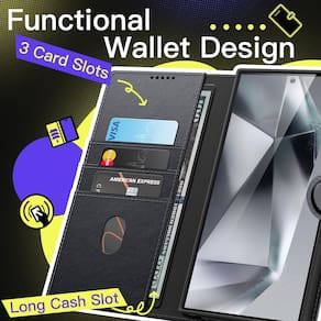 — [proteção geral] projetada para Samsung Galaxy S24 Ultra 5G. A capa de couro PU e a parte traseira interna de TPU flexível protegem seu dispositivo contra arranhões, choques e solavancos. Materiais premium garantem uma aderência confortável
