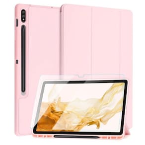 Capa tpu auto sleep para tab s8 11 x700 + película de vidro cor: rosa claro+ você já passou por aquela situação em que derrubou seu tablet e se assustou ao ver que a tela quebrou sabemos que isso pode ser uma grande dor de cabeça, mas temos a solução perfeita para você