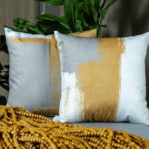 Capa Velveteen 787 43 Cm X 43 Cm Mostarda/Cinza