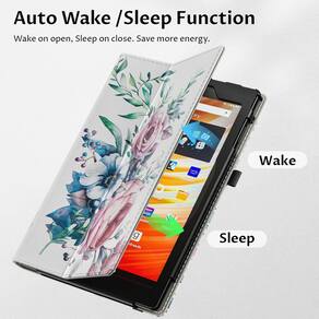 - [Despertar/Dormir automaticamente]: a capa para Kindle Fire HD 10 desperta automaticamente seu tablet Fire HD 10 quando aberta e o coloca em repouso quando fechado. E o fecho magnético e o elástico mantêm a capa bem fechada, protegendo seu dispositivo de cair