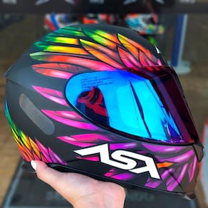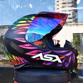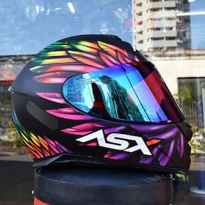 • Casco aerodinâmico em resina termoplástica ABS; • Pintura e verniz automotivos PPG; • Estrutura interna canaletada com dupla densidade e de alta absorção de impacto; • Sistema de ventilação moderno em perfeita harmonia com o casco e de fácil acionamento; • Forro removível e extremamente confortável, cortado a laser e moldado mecanicamente; • Viseira Cristal em policarbonato de 2 mm com amplo campo de visão, proteção antirrisco, antiembaçante e UV; • Trava da viseira que proporciona um fechamento perfeito com excelente vedação; • Sistema de troca rápida da viseira, facilitando a troca das mesmas para as demais recomendadas em situações diurnas e noturnas; • Cinta jugular com engate micrométrico e acabamento em tecido removível, resultando maior praticidade, conforto e segurança; • Narigueira antiembaçante; • Bavete, indispensável na redução do vento interno, proporcionando maior conforto na pilotagem; • Peso 1470/1520g. Ean: 7908328526024