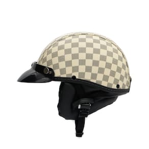 Capacete coquinho scooter moto elétrica bike couro xadrez tamanho: g - veste 59/60 com o capacete br101 você irá pilotar com segurança e estilo eles possuem designs próprios e inovadores, que protegem você de possíveis lesões e impactos. Estilo, segurança e conforto em um único produto