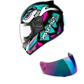 - Acompanha viseira cristal e viseira camaleão; - Design com grafismos em transfer mais agressivo e moderno; - Viseira de dupla curvatura em policarbonato com 2 mm de espessura; - Fechamento de engate rápido; - Entradas e saídas de ar; - Casco aerodinâmico em resina termoplástica; - Sistema de troca rápida da viseira; - Casco injetado em ABS natural de alto impacto; - Revestimento de proteção feito em EPS de alto impacto; - Forro com espuma antialérgica removível e lavável; - Cinta jugular em nylon com fecho micrométrico; - Selo INMETRO; - Adesivos Refletivos; - Imagens meramente ilustrativas.