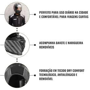 - Casco totalmente ventilado com entradas de ar superior e frontal e saída de ar traseira.