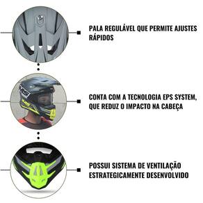 Esse capacete eleva sua experiência no off-road com um design moderno e funcional, pensado para oferecer máxima proteção e um visual marcante nas trilhas, motocross, enduro, velocross e outras modalidades radicais.