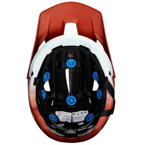 A ventilação é destaque, com 20 entradas de ar estrategicamente posicionadas para manter o fluxo de ar constante, evitando o acúmulo de calor até em dias quentes e trilhas técnicas. O forro interno é removível, respirável e possui tratamento antibacteriano, contribuindo para o frescor e a higiene no uso diário. A viseira tem ajuste flexível e sistema breakaway, oferecendo proteção contra obstáculos como galhos e sol intenso, e se desprende facilmente para evitar lesões.