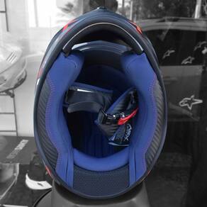 O capacete é enviado na caixa da ASX junto com sua embalagem protetora do tecido e manual.