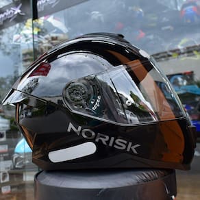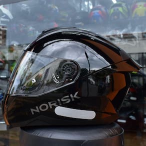 O capacete é enviado na caixa da NORISK junto com sua embalagem protetora do tecido e manual.