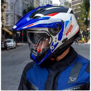Capacete Nolan N70-2x Stunner Branco Azul Vermelho 53 100% Italiano, N70-2 X é o modelo mais versátil da marca italiana Nolan. Essa versatilidade é exibida nas oito configurações possíveis utilizando a queixeira, viseira e pala removíveis. Este capacete irá surpreender você que pilota tanto no asfalto, quanto na terra. Vale lembrar que esse Nolan foi o primeiro capacete de moto do mercado equipado com a proteção de queixo removível, permitindo ser um capacete aberto e fechado, ou seja, dois em um. Assim, você pode andar com um estilo off-road completo ou um estilo de pilotagem mais suave. O N70-2 possui uma viseira ultra-larga que proporciona um campo de visão mais amplo. •Protetor de Queixo Removível •Acompanha Pinlock •Campo de visão amplo Características: Calota do capacete: A calota do Nolan N70-2 X foi desenvolvida para atender aqueles que não dispensam proteção, porém investem em estilo e perfeição. A composição é de Policarbonato LEXAN, um polímero de alta qualidade quando se trata de eficiência de impacto. É importante destacar que o Policarbonato LEXAN é mais eficaz e rígido do que o ABS utilizado em algumas marcas de capacete. Este modelo possui dois tamanhos de calota, o S (55-56) e M (57-58), e o L (59-60) e XL (61-62), porém o tamanho do EPS (isopor que absorve o impacto) altera de acordo com cada tamanho elevando a segurança do casco. Sistema de segurança: O Nolan N70-2 X é equipado com um sistema de segurança Microlock 2 (engate rápido), o qual possui dupla alavanca e ajuste micrométrico. Esse sistema é produzido com material termoplástico para a alavanca de abertura ergonômica e alumínio para a alavanca dentada e vedante. Uma alavanca só abre após a outra ser liberada, isso reduz a possibilidade de abertura involuntária. Esse produto é homologado para ser utilizado tanto com a queixeira, quanto sem a queixeira. Ou seja, ele foi aprovado para ser um capacete integral e aberto. Viseira: Uma das principais características desse modelo é o amplo campo de visão da viseira. Essa viseira possibilita uma visão maior na parte frontal e lateral, garantindo assim o máximo conforto e segurança na pilotagem. A viseira também é resistente a arranhões, dispõe de sete estágios de aberto e possui pinos para a instalação do Pinlock (incluso), película ante embaçante. Este modelo de capacete idealizado pelo grupo italiano, possui um sistema de ajuste na viseira que permite ajustar com exatidão o Pinlock. Esse sistema atua do lado externo da viseira, não havendo a necessidade de desmontá-la para a instalação do Pinlock. Visor solar: Visor solar impresso em Policarbonato LEXAN e proteção contra raios ultravioletas de até 400 nanômetros. Além disso, o visor possui tratamento S/R, resistente a arranhões, e F/R, resistente a neblina e manchas. Este visor pode ser facilmente desmontado para casos em que não haja necessidade do uso do mesmo, ou que seja preciso a lavagem do acessório. O acionamento do óculos solar é realizado através do lado esquerdo e para voltar na posição autêntico basta apertar o botão que o visor irá retornar automaticamente. Conforto/Forração: O interior do Nolan N70-2 X foi confeccionado por um sistema de conforto recém-concebido. Desenvolvido por micro perfurados de micro densidades e combinado com o sistema de ventilação avançado “AirBooster Technology”, promove a difusão do ar na área superior da cabeça do piloto. A cinta jugular é equipada com duas almofadas para maior conforto na pilotagem. Vale lembrar que essas almofadas são removíveis e laváveis, assim como toda a forração. Esse modelo também possui clips de ajustes na forração, possibilitando a regulagem perfeita no rosto do piloto. Ventilação: O Nolan N70-2 X conta com um alto sistema de ventilação AirBooster, o qual assegura uma ventilação ideal onde o piloto mais precisa. O ar é retirado das entradas de ar dianteiras e encaminhado até as áreas mais críticas que recebem menos ventilação. Esse sistema de ventilação também consiste em outra entrada de ar na queixeira, a qual ventila a boca direcionando o ar diretamente para a viseira, limitando o embaçamento. Além disso, também possui uma saída de ar integrada ao spoiler traseiro, expulsando o ar quente do capacete. O que acompanha o Nolan N70-2 X? Esse modelo acompanha Pinlock (película antiembaçante), visor solar interno, viseira cristal e bavete. O capacete já é preparado e aprovado para uso do sistema de intercomunicador N-Com (vendido separadamente). Contém:1 - Capacete Nolan N70-2X Stunner Branco/Azul/Vermelho***Imagem Ilustrativa***