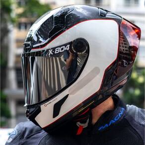 Capacete Nolan X-804 RS Uc Asso Di Picche Branco Vermelho 343   Acompanha: Pinlock anti-embaçante, Viseira escura pré-montada, Protetor nasal e Correia do queixo, Sacola de transporte.   O Nolan X-804 RS Ultra Carbon é um capacete premium da prestigiada coleção Xseries, sendo o sucessor do X-Lite X-803 RS.   Sua construção em fibra de carbono garante resistência e redução de peso, enquanto o design aerodinâmico, desenvolvido em túnel de vento, proporciona maior estabilidade em altas velocidades. Além disso, seu amplo campo de visão e interior de alta qualidade garantem uma experiência única para motociclistas que buscam segurança e performance.   Com o campo de visão ampliado e um design de alto desempenho, o Capacete Nolan X-804 RS Uc oferece excepcional leveza, aerodinâmica avançada e conforto de nível superior, ideal tanto para pistas quanto para estradas.     Características do Capacete Nolan X-804 RS Uc   Material: Fibra de carbono ultraleve.   Tamanhos disponíveis: 4 tamanhos de casco para melhor ajuste.   Segurança: Espumas EPS multidensidade para melhor absorção de impacto. Tecnologia NERS (Nolan Emergency Release System) para remoção rápida das espumas em emergências.   Aerodinâmica: Spoiler Racetrack para estabilidade em alta velocidade. Design otimizado via CFD (Computational Fluid Dynamics) para estabilidade máxima e menor fadiga cervical.   Interior: Forro totalmente removível, lavável, com ajuste ergonômico e tecido antibacteriano/antitranspiração. Espumas 3D para ajuste perfeito. Compatível com óculos de proteção. Orifício para instalação de camel back / Mochila de Hidratação (não incluso).   Viseira: Campo de visão extra-amplo. Pré-disposição para Pinlock (incluso). Tratamento anti-riscos duplo. Sistema de remoção rápida e bloqueio do ecrâ SVLS fácil de utilizar (protege de detritos, vento e intempéries).   Ventilação: Sistema Racing Air Flow, com múltiplas entradas de ar ajustáveis e extratores traseiros duplos.   Fecho: Cinta de queixo com fecho duplo D para máxima segurança.   Homologação: CE 22.06, A mais recente norma europeia que estabelece os requisitos de segurança para capacetes de motociclistas. INMETRO, autarquia federal que fiscaliza e avalia produtos e serviços no Brasil.   Com design sofisticado e performance de ponta, o Nolan X-804 RS Uc é a escolha ideal para quem busca um capacete premium para pilotagem de alto nível!Contém:1 - Capacete Nolan X-804 Asso Di Picche Branco/Vemelho***Imagem Ilustrativa***