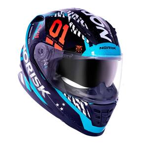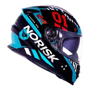 - Possui o selo do INMETRO e adesivos refletivos; - Casco em resina termoplástica ABS; - Viseira de 2mm com proteção UV, resistente a risco; - Viseira solar interna; - Forração em tecido tecnológico, hipoalérgico, removível e lavável; - Cinta jugular com sistema de engate micrométrico; - Sistema de ventilação: Entradas de ar frontal e extratores traseiros.