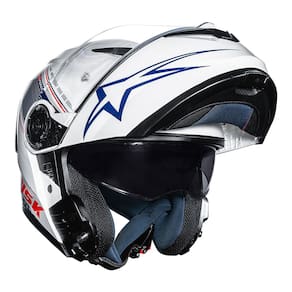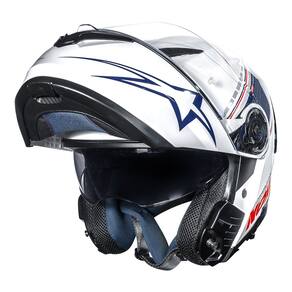 A viseira desse capacete conta com 5 estágios de abertura, e possui troca rápida de viseira. Com excelente campo de visão e viseira de policarbonato com 2,2 mm resistente a riscos e marcas, também oferece óculos interno escuro com proteção UV. Facilmente acionado na lateral inferior esquerda do capacete.