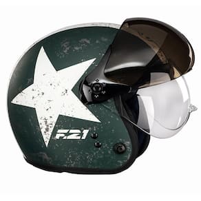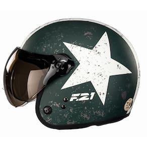 O capacete F-21 da Peels é um modelo (aberto) urbano com a opção da queixeira removível, com muito estilo e design único ao melhor estilo aviador.O F-21 da Peels é para quem procura por um capacete com design diferente e mais agressivo para pilotar a sua moto seja para o trabalho ou lazer. Ele é um capacete para uso urbano, ideal para quem deseja a praticidade e design de um capacete fechado, mas gostaria de ter a versatilidade de um capacete aberto, com conforto e excelente acabamento.O modelo conta ainda com o requinte de duas viseiras bolhas “cristal” e “fumê – mais proteção e praticidade para o piloto em dias de muito sol”. Os detalhes dos seus componentes e funcionalidades, com design ousado colocam entre os melhores e mais bonitos capacetes do mercado.O capacete Peels F-21 possui o casco injetado em termoplástico de alta absorção, decoração em decal com verniz protetor e pintura mais resistente, queixeira removível (sendo possível utilizar o capacete de maneira totalmente fechado ou aberto), revestimento interno removível e lavável em tecido antialérgico, forração ergonômica (melhor encaixe na cabeça) e com nuqueira (melhor vedação), duas viseiras (cristal e fumê) em policarbonato de 2mm e tratamento antirrisco, viseira de troca rápida e ampla variedade de cores.