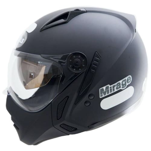 Características: O modelo Mirage da PEELS é um capacete ideal para quem deseja a versatilidade e inovação quando o assunto é design. O modelo possui a queixeira removível podendo ser utilizado como capacete integral fechado ou Jet aberto , o que o torna um modelo ideal tanto na cidade quanto em trajetos mais longos. O capacete conta também com a viseira inferna fumê Sun visor que garante proteção para dias de muito sol, ambas as viseiras possuem tratamentos antirrisco. O capacete conta também com casco injetado em ABS de alta absorção, forração removível e lavável em tecido antialérgico, forração ergonômica e muito mais.