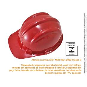 Capacete de Segurança Com Carneira Para Obras - Vermelho