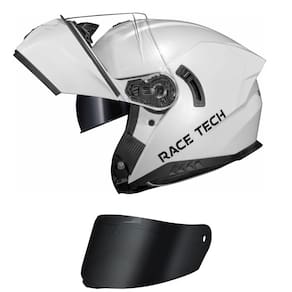 Capacete Race Tech Signal Monocolor Branco Brilhante Mais Viseira Fumê