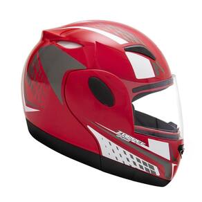 O modelo escamoteável Zarref Grafic, é um capacete na cor vermelha com decoração preta. Possui viseira cristal e bochecha removível. A escolha perfeita para os que buscam um capacete clássico e estiloso.