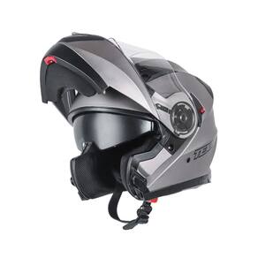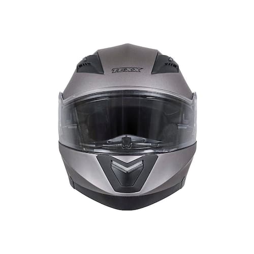 Com frente escamoteável. o capacete TEXX Gladiator V3 possui as viseiras externa e solar interna com acabamento antirrisco. antiembaçamento e com proteção UVA/UVB. O forro interno é produzido com moléculas de prata antifungo e antibactéria. DESCRIÇÃO DO PRODUTO CONSTRUÇÃO Produzido em ABS que garante resistência e leveza ao capacete; Viseira externa produzida em policarbonato de 2.2mm e com acabamento antirrisco.