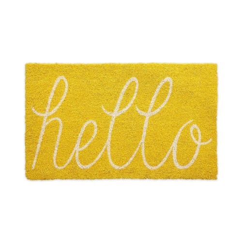DII Hello Capacho de fibra de coco antiderrapante durável para uso externo/interno, adequado para animais de estimação, 48 x 75 cm, amarelo