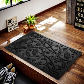 Capacho VivaNest Green Floral Front Door —?CAPACHO DURÁVEL PARA TODAS AS ESTAÇÕES?: O capacho para todas as estações da VivaNest apresenta um design floral de eucalipto natural clássico e moderno. Construído com uma estrutura de alta densidade, macia e flexível. Seus sulcos profundos e a borda de borracha chanfrada capturam facilmente sujeira, detritos e umidade. -?MATERIAL RESISTENTE A MANCHAS E DESBOTAMENTO?: Este capacho foi projetado para ser durável, com superfícies resistentes a manchas, intempéries e desbotamento para uso interno e externo de longa duração. Construído com materiais de alta qualidade, ele permanece forte e flexível em todas as condições climáticas. -?SUPORTE DE BORRACHA NATURAL ANTIDERRAPANTE?: Nossos tapetes possuem um suporte de borracha resistente de 2,5 kg/m², garantindo estabilidade e segurança superiores. Fabricados com borracha natural para maior resistência e resistência ao rasgo, eles emitem um odor mínimo. Com um suporte de borracha antiderrapante, eles evitam escorregões e infiltrações de água, protegendo efetivamente os pisos internos. -?MULTIUSO?: Os tapetes de boas-vindas da VivaNest são projetados para uso versátil, em ambientes internos e externos, mantendo os pisos limpos em residências, escritórios, portas dianteiras, calçadas, terraços, garagens, celeiros, calçadas e vários outros ambientes. Seu design simples e elegante complementa qualquer decoração, tornando-os uma opção de presente ideal. -?FÁCIL DE LIMPAR?: Nossos tapetes são projetados para uma manutenção sem complicações. Basta usar um aspirador de pó ou sacudir os detritos para uma limpeza rápida. Para uma limpeza mais profunda, enxágue com uma mangueira de jardim e deixe secar rapidamente.