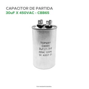 - Modelo: CBB65 - Capacitância: 30uF - Tolerância: 5% - Tensão nominal: 450V AC - Frequência: 50/60Hz - Conexões: 5 terminais - Tipo: Capacitor de uso permanente - Temperatura de operação: - 40 graus a +85 graus - Aplicações: Motores monofásicos, exaustores, compressores, climatizadores e ventiladores industriais. Marca: Não Informado Ean: 7908891105282