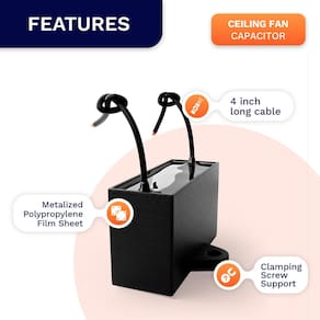 Compatibilidade universal: Este capacitor de ventilador de teto (46x29x17 mm) é utilizado para ventiladores de teto, ventiladores de parede, ventiladores de suporte, ventiladores industriais, ventiladores de exaustor, ventiladores de troca de ar, bombas de água, motores, geradores, etc. Substitui qualquer marca com a mesma capacidade de capacitância e tensão.