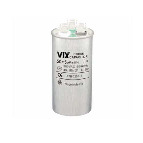 O Capacitor Permanente Vix 50+5MF - 380 Volts, tem a vantagem de baixa dissipação, alta resistência de isolamento, bom caráter de autocura, corrente anti-choque, forte capacidade desempenho elétrico estável e de segurança confiável com dispositivo anti-explosão interno. É aplicado em ar condicionado, sistemas de refrigeração, e bastante útil para a partida e funcionamento do motor.