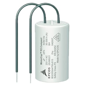 • Marcas: Epcos • Capacitância (µF): 50 • Tolerância (%): ±10 • Voltagem (VAC): 250 • Temperatura Limite de Operação: -25 à +85ºC • Freqüência Nominal (Hz): 50 / 60Hz • Fator de Perdas a 120Hz (Máx): 5 x 10-4 • Tensão de Pico: (Vp): 1,1 x Um. • Tensão de Teste entre Terminais (C.A.): 1,5 x Un / 2s : 1,3 x In