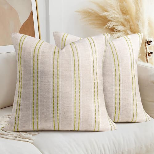Estas elegantes capas de almofada listradas jacquard da AELS servirão como peças de decoração para aquecer seu espaço de vida e mostrar seu estilo requintado. Com qualidade premium e acabamento fantástico, estas excelentes capas de almofada serão uma decoração adorável para uma atmosfera diferente e feriados. Então, vista-se com ele! Tamanho: 61 x 61 cm Instruções de cuidados: Lavar à máquina a frio Não usar alvejante. Não secar na máquina Passar a ferro frio se necessário Secar na horizontal. A capa que você receber pode diferir ligeiramente da foto devido ao procedimento de corte do material do tecido. Considere um desvio de 1 a 2 cm devido ao corte e costura à mão. Isenção de responsabilidade sobre cor e imagem: apesar de todos os esforços para fornecer imagens precisas da cor de cada produto, as cores reais podem variar ligeiramente devido a diferentes resoluções e configurações de tela do dispositivo. - [Design elegante de listras jacquard] O design listrado combina bem com a maioria das decorações. As capas de travesseiro da AELS com um design moderno de trama jacquard combinam perfeitamente com a decoração do seu quarto. Elas servem tanto para fins estéticos quanto funcionais. - [Perfeito para a maioria das ocasiões] Renove sua cama, sofás, cadeiras ou sofás com estas capas de travesseiro para decorações simples e elegantes — também um complemento perfeito para o seu quarto de hóspedes, sala de estar, quarto ou arranjo de assentos de entrada. - [Fácil instalação e remoção] Um zíper oculto na parte inferior pode ser aberto e fechado quando o travesseiro é instalado. Para instalar o travesseiro, basta dobrá-lo ao meio ao colocá-lo na capa e, em seguida, desdobrá-lo dentro da capa para preencher os cantos. - [Especificação] Conjunto de 2, 61 cm x 61 cm, 97% poliéster, 3% linho. APENAS CAPA. As almofadas não estão incluídas. - Instruções de cuidados: Lavar à máquina a frio separadamente. Não usar alvejante. Secar em temperatura baixa.