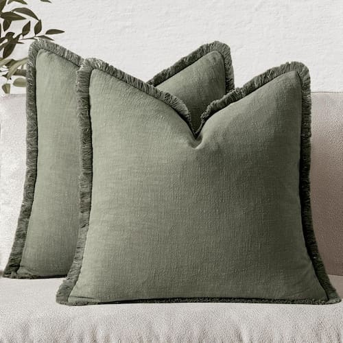 TAMANHO: O pacote inclui 2 peças de capas de travesseiro de sofá de 50,8 x 50,8 cm sem inserção. Considere uma diferença de 1 a 2 cm devido ao corte e costura manuais. - ?Material requintado de linho de fazenda?As capas de almofada de linho decorativas da MIUlee apresentam 80% linho rami natural e 20% mistura de algodão. O linho lavado com pedra de alta qualidade adiciona charme rústico, com suas rugas texturizadas ideais para interiores de casas de fazenda. Envelhece graciosamente a cada lavagem, melhorando sua personalidade e conforto. O tecido de linho garante durabilidade e respirabilidade, proporcionando um toque suave que é adequado para uso durante todo o ano. - ?Design com franjas boêmias?Estas capas de almofada apresentam um design elegante de franjas ao longo das bordas, adicionando elegância boêmia ao seu sofá ou cama. As borlas curtas criam uma atmosfera relaxada, tornando-as um ótimo complemento para qualquer decoração. Elas se misturam facilmente com vários estilos, melhorando a estética geral do seu espaço de vida. - ?Suavidade para conforto supremo?As capas de almofada MIULEE são luxuosamente macias, oferecendo uma sensação aconchegante para suas áreas de estar ou dormir. A textura natural convida ao relaxamento, seja lendo no sofá ou dormindo. Sua suavidade melhora ao longo do tempo, tornando-as favoritas para aqueles que valorizam o conforto e a qualidade em móveis domésticos. - ?Decoração versátil em qualquer lugar?Adequado para uso interno e externo, estas capas de almofada podem decorar sua sala de estar, quarto, escritório, marquise, bancos de cozinha, pátio, berçário, carro ou chão. Sua cor verde-oliva clara e design elegante as tornam versáteis para qualquer tema de decoração. Use-as no seu sofá para sofisticação ou na sua cama para um toque aconchegante que une o cômodo. - ?Fácil de cuidar?O conjunto inclui apenas duas capas de travesseiro de 50 x 50 cm. São fáceis de manter, recomenda-se lavar à mão ou à máquina em um ciclo delicado. Secar em temperatura baixa e evitar passar a ferro para mantê-las em perfeitas condições.