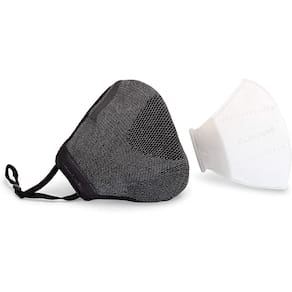 Honeywell Pacote com 4 capas faciais de camada dupla cinza escuro com 32 inserções substituíveis, tamanho M/G (RWS-50112), cinza escuro, Cinza escuro - Confortável: a estrutura de malha tridimensional sem costura oferece elasticidade em 4 direções, minimizando lacunas e melhorando o conforto geral - Ajustável: as presilhas e o clipe de nariz são ajustáveis - Substituição fácil do filtro: bolso oculto projetado para facilitar a remoção e substituição do filtro Honeywell - Respirabilidade aprimorada: o design contornado se destaca do rosto para melhorar a respirabilidade