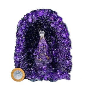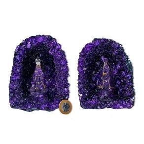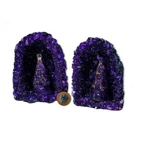 Capela de Ametista com Nossa Senhora Aparecida 12 a 14cm — Geodo com Cristais Lilás em Aglomerado | Pedra Bruta de Garimpo Peça devocional e energética com cristais de Ametista Extra e imagem de Nossa Senhora Aparecida – Ideal para fé, proteção espiritual e decoração. Transforme seu ambiente com a força espiritual e a beleza natural da Capela de Ametista com Nossa Senhora Aparecida. Essa formação de geodo apresenta pontas cristalizadas em lindo tom lilás e inclui uma pequena imagem da padroeira do Brasil, tornando-se uma peça de fé, luz e energia. Retirada diretamente do garimpo, a peça preserva sua estrutura bruta e autêntica, apenas lavada para remover a terra. Especificações do Produto: