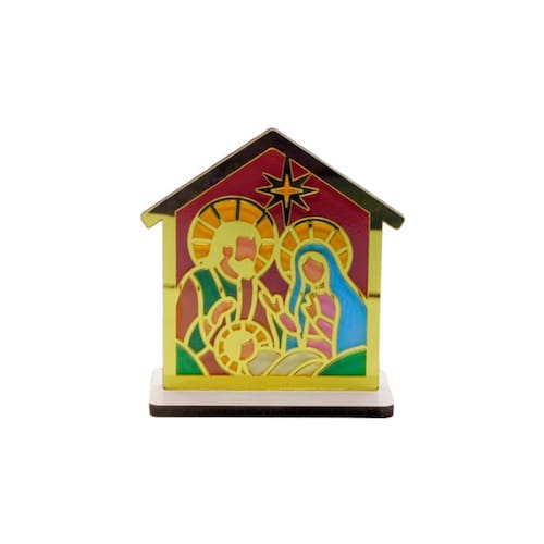 Esse presépio estilizado da Sagrada Família é uma peça encantadora! Feito em MDF e com detalhes em acrílico espelhado dourado, ele certamente traz um toque elegante à decoração.É ideal para exibir em mesas, estantes ou prateleiras ou seu altar. Além de ser um belo elemento decorativo, também transmite a mensagem do Natal.