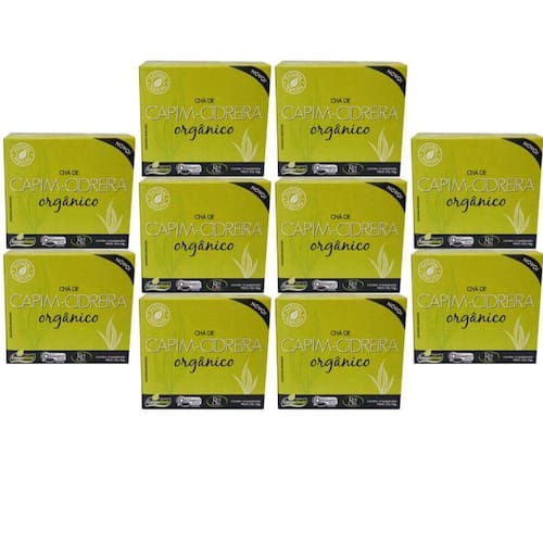 KIT 10 CAIXAS CHÁ DE CAPIM CIDREIRA 100% ORGÂNICO CERTIFICADO